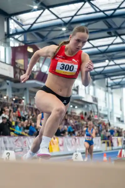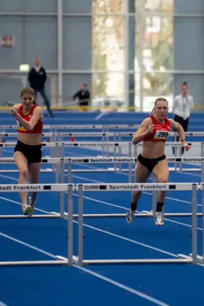 Für Amelie Giese wurde das Wochenende in Frankfurt zu einem echten Leistungstest: Bereits am Samstag um 11 Uhr startete sie über die 60 Meter Flachstrecke. Nach 7,86 Sekunden im Vorlauf steigerte sie sich im Zwischenlauf auf 7,75 Sekunden und verbesserte damit ihre persönliche Bestmarke um eine Hundertstel gegenüber München. Im hochklassigen Finale bestätigte sie ihre Stabilität und sprintete in 7,79 Sekunden auf Platz acht.