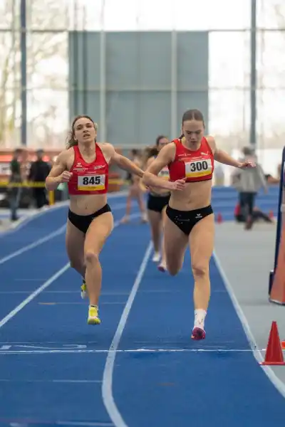 Für Amelie Giese wurde das Wochenende in Frankfurt zu einem echten Leistungstest: Bereits am Samstag um 11 Uhr startete sie über die 60 Meter Flachstrecke. Nach 7,86 Sekunden im Vorlauf steigerte sie sich im Zwischenlauf auf 7,75 Sekunden und verbesserte damit ihre persönliche Bestmarke um eine Hundertstel gegenüber München. Im hochklassigen Finale bestätigte sie ihre Stabilität und sprintete in 7,79 Sekunden auf Platz acht.