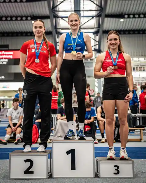 Der enge Zeitplan verlangte Amelie zusätzlich einiges ab. Um rechtzeitig im Finale über 60 Meter Hürden antreten zu können, musste sie sogar einen Sprung auslassen. Dennoch zeigte sie auch dort ihre Klasse und sprintete als Zweite ins Ziel – süddeutsche Vizemeisterin im Hürdensprint. Damit krönte sie ein ohnehin herausragendes Wochenende, an dem sie nicht nur zwei Medaillen gewann, sondern auch im Sprint bis ins Finale vordrang und mit 7,75 Sekunden eine neue Bestleistung erzielte. Diese Zeit macht sie zur schnellsten Athletin ihres Jahrgangs 2010 und bedeutet zugleich die Qualifikation für die Deutschen U20 Meisterschaften.