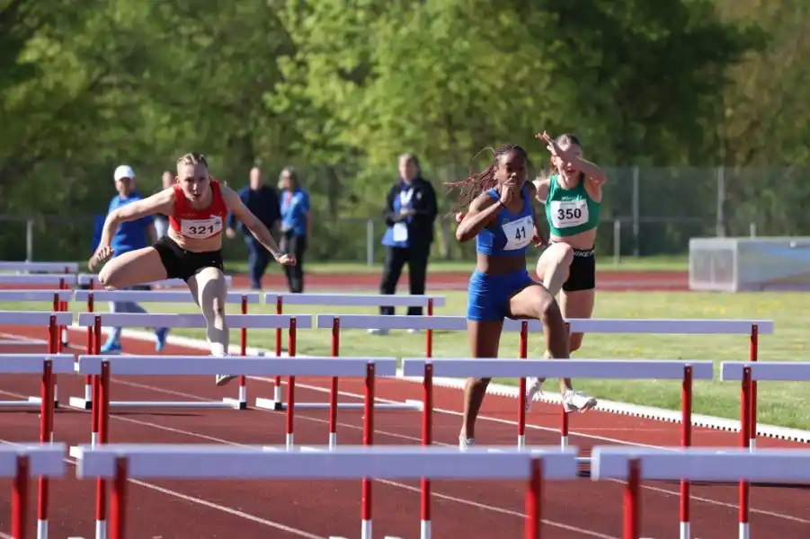 Einige Athleten konnten bereits so früh in der Saison zeigen, was in ihnen steckt und machen neugierig auf die kommende Saison. Eins der mit Spannung erwarteten Duelle war der Hürdenlauf der weiblichen Jugend über 100m. Dauerkonkurrentinnen Amelie Giese und Munachi Eze lieferten dann auch bei ihrer Premiere über die 100m Hürde ein sehr spannendes Duell, welches diesmal Eze mit 13,81 gewann. Amelie Giese holt Silber mit 14,35 und hat damit auch die Quali für die Deutschen Meisterschaften in der Tasche. Amelie Giese konnte zudem ihren 200m Lauf klar gewinnen (Gold mit 25,77).